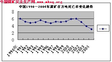 坚持以人为本,强化煤矿安全生产,全国煤矿百万吨死亡率由1978年的9.44人下降到2004年的3.1人。