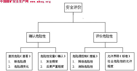 安全评价(safety assessment)是对系统危险程度的客观评价,它通过对系统中存在的危险源和控制措施的评价客观地描述系统的危险程度,指导人们预先采取措施,降低系统的危险性。安全评价包括确认危险性和评价危险性两个方面,前者在于辨识危险源,定量来自危险源的危险性;后者在于控制危险源,评价采取措施的危险源存在的危险性是否能被接受。我们可将煤矿的安全评价分为:煤矿建设项目安全预评价,煤矿建设项目安全验收评价和煤矿安全现状综合评价,即对煤矿设施,设备,装置实际情况的调查分析,定性定量分析其生产过程中存在的危险,有害因素,确定其危险度,对其安全管理状况给予客观的评价,对存在的问题提出合理可行性的安全对策措施及建议。