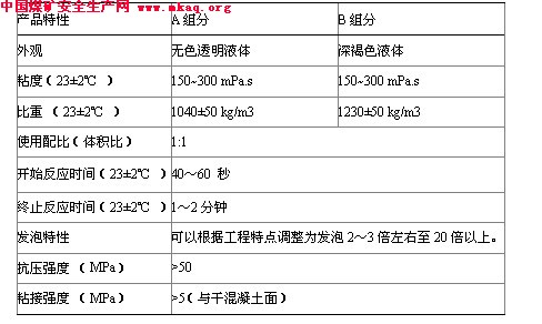 该浆液在物理性能(粘度、胶凝时间、聚合特点等)、强度性能(粘结强度、固砂强度)及高渗透性等方面均可以满足该项工程固结防渗的要求。另一方面,浆液具有稳定性较好、无溶剂等特点,在煤矿井下可以安全使用。