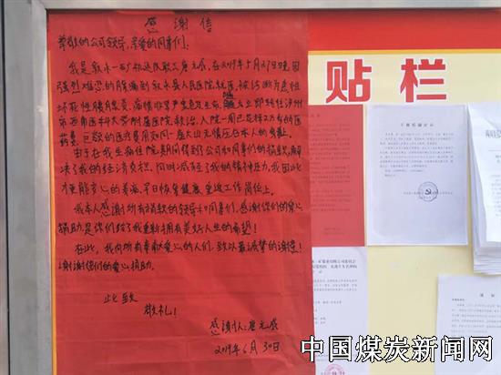 “感谢所有捐款的领导和同事们,感谢你们的爱心捐助,是你们给了我重新拥有美好人生的希望。”日前,川煤集团芙蓉公司叙永一矿机运队职工唐元成致信感谢企业在他生病期间给予的关爱和帮助。