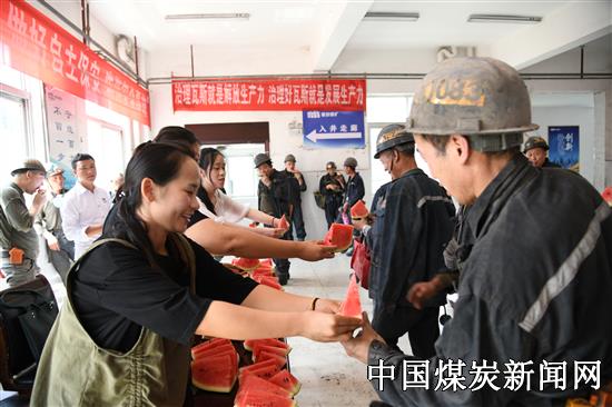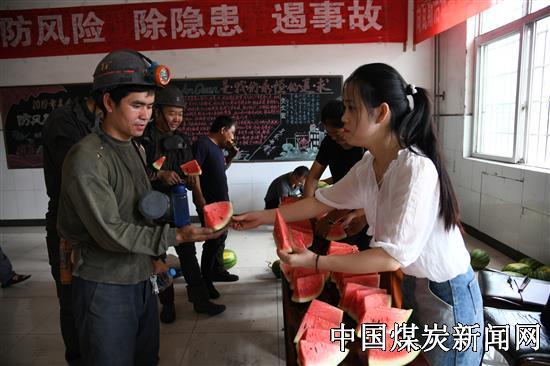 “师傅,天气热,吃块西瓜解解渴。”7月27日,贵州豫能新田煤矿井口信息站女工协管员赵文莉边送上西瓜边说道。