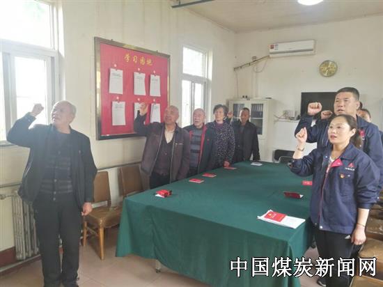 “我志愿加入中国共产党,拥护党的纲领,遵守党的章程……”由离退休老党员领誓,在职党员及离退休其他成员一起重温入党誓词,面向鲜红的党旗庄严宣誓。