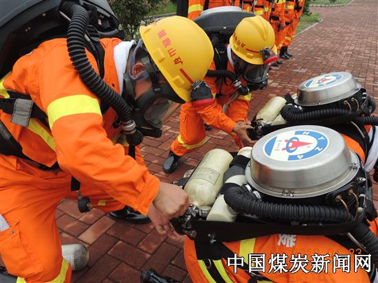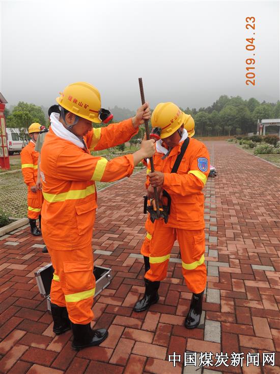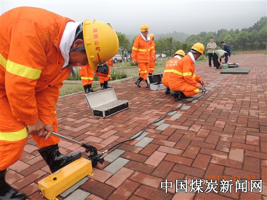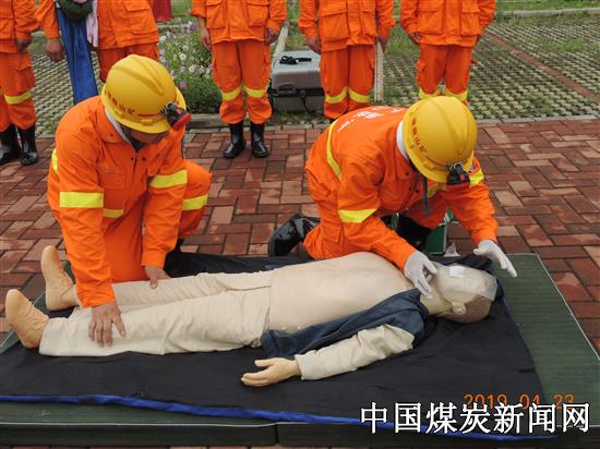 万米佩机训练,是救护指战员们日常训练的科目,也是救护队的一项“必修课”,通过佩机训练能增强救护指战员的体能和耐力,使指战员熟悉、适应氧气呼吸,提高指战员心理素质,适应井下灾区的复杂条件和恶劣环境,能够在保证自身安全的前提下,达到安全救援的目的;互换氧气瓶是当救护队员进入灾区从事救援工作时,而本人或同伴的呼吸器却发生了故障:有可能不气密、呼吸循环系统失调、面罩不严、氧气瓶漏气等或工作时间过长(超过规定的防护使用时问)等。由于救护队员在灾区,只能依赖于氧气呼吸器保证自身的生命安全,一旦发生故障,容易造成队员因缺氧、呼吸了外界的有毒有害气体而发生窒息或中毒事故,威胁救护队员的生命安全。因此救护人员必须掌握氧气呼吸器自救与互救的相关知识和操作技能;心肺复苏是对心跳骤停、溺水等伤员进行胸外心脏按压的一项急救技术;工伤包扎是在对外伤、出血、骨折等伤员进行止血、固定、包扎;液压剪在抢险救援时可安全快速地剪断ф22mm以下的高强度锚杆或锚索,性能可靠、力量大、重量轻操作携带方便,适合各种环境;极大地提高了抢险救援工作效率,减轻了劳动强度,为抢救遇险人员赢得宝贵的时间。