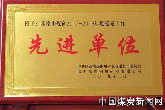 陕煤铜川铜川矿业公司2019年稳定工作会上又传来一大喜讯,陈家山煤矿被评为2017-2018年度稳定工作“先进单位”。