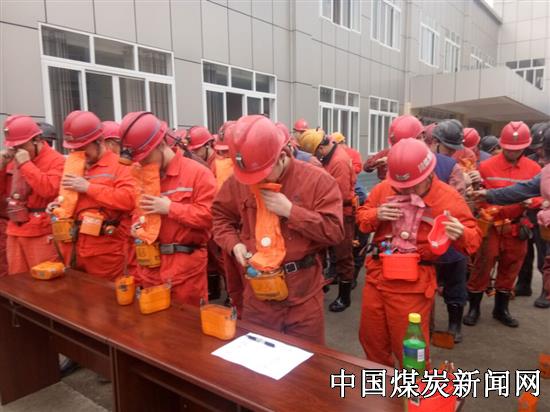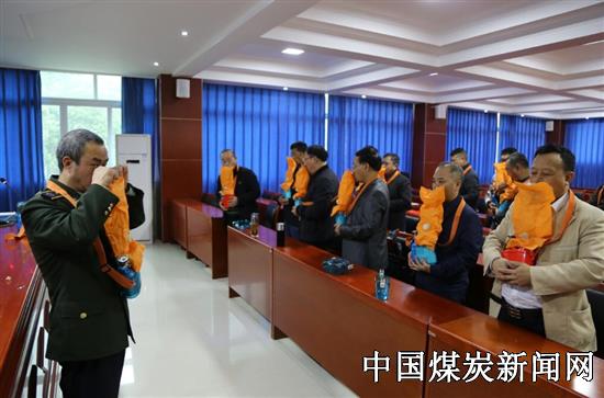 培训学员认真听完讲解,按步骤正确佩戴上了自救器,进行呼、吸气操作实验,并在老师及救护队员带领下到井下演习巷道进行现场模拟入井佩戴自救器实际操作。