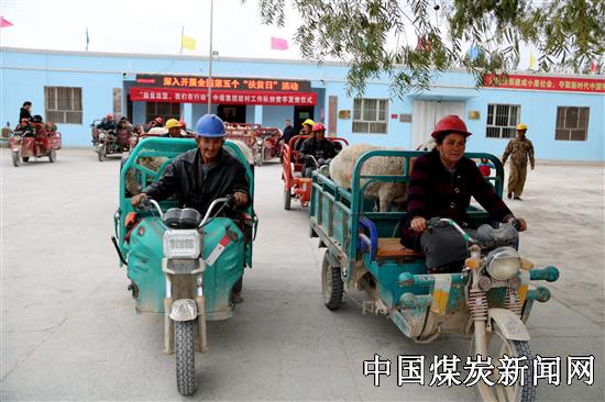 在扶贫活动现场,中煤能源新疆公司党委书记赵立正将扶贫羊发放给贫困户和困难群众,在接受记者采访时,赵立正表示,今天是全国第五个扶贫日,新疆分公司下属的6家单位都举办购买农产品和捐款捐物活动,购买了村民种植的4吨核桃,同时将募集的10万余元、近千件衣物和百余套书籍送到困难群众手中。“我们通过拓宽村民增收渠道,帮助贫困户发展经济,争取早日让贫困群众实现脱贫“通过生产母羊的发放,实现由‘输血’式扶贫逐渐转变为‘造血’式扶贫,进一步调整生产结构,让贫困户通过自己养羊、育羔等途径不断拓宽增收渠道,助推贫困户发展经济,早日奔向小康之路。”赵立正说。