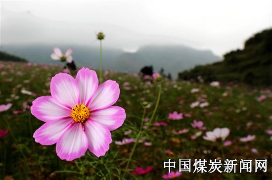 金秋十月,收获满满,正值国庆小长假之际,贵州松河煤业公司的选煤厂矸石山,在蓝天白云映衬之下,数十万株格桑花竞相开放,引得蝴蝶翩翩飞舞,轻风微拂,送来阵阵花香,形成一片馥郁的格桑花的海洋。前来赏花的人络绎不绝,人们尽情的徜徉在花海中嬉闹、留影,欢声笑语不绝于耳。