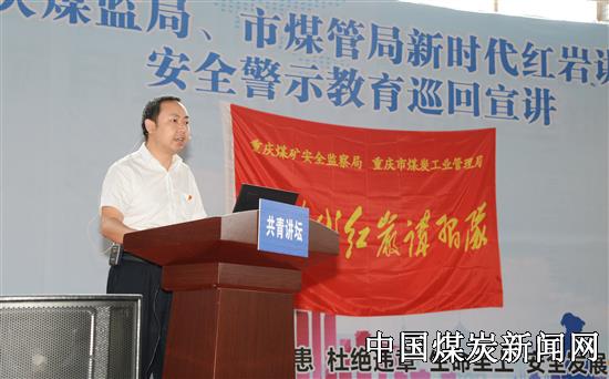 图为重庆煤监局纪检组长廖永涛在宣讲中。
