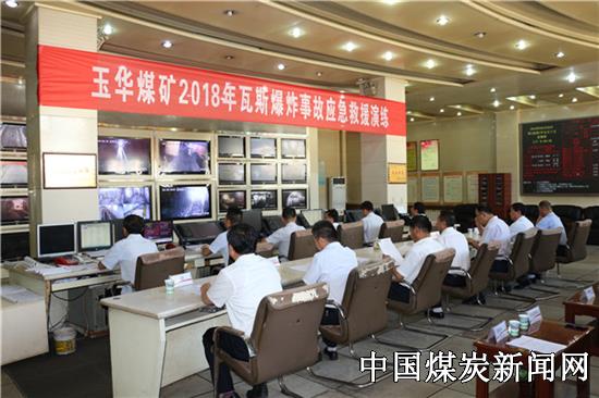 “2407运顺联巷掘进工作面正头放炮期间有大量粉尘涌出,并伴有冲击波,疑似瓦斯爆炸,现场无人员遇难,有一名放炮员昏迷,正组织人员撤离……”,6月28日上午10时,一阵急促的电话铃声打破了生产调度室的平静,井下2407工作面当班带班干部电话汇报调度室,矿调度室值班人员迅速汇报矿主要领导,立即启动应急救援预案,开展事故救援应急工作。这是铜川矿业公司玉华煤矿“安全生产月”活动中开展的井下瓦斯爆炸事故应急救援演练的一个场景。