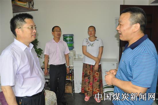在井口广场,慰问组一行与正要上班的党员何建军亲切交谈,询问了他的儿子就医情况,叮嘱他有什么困难要向党组织反映,要让儿子好好读书,自己安心上班。