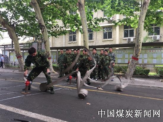 比赛过程紧张有序,选手们各个操作熟练、动作敏捷。第二个比武科目是消防水带整理。伴随着一条条优美的抛物线,消防水带犹如盘龙出海,蜿蜒向前。选手们身手敏捷,在最短的时间内把水带盘好规整,以备使用方便。