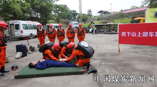 演练中,新余大队演练组接到报警电话后迅速集合队伍,装备车保障人员立即启动国家区域救援装备车提供装备后勤保障。救援队员携带救援装备奔赴现场,进行战前检查,深入井下侦察灾情。抵达事故现场后立即展开应急救援,发现两名遇险受伤人员,迅速把遇险受伤人员抬至通风良好、环境舒适的安全地点。一名遇险人员发生下肢骨折、一名遇险人员心跳骤停。救援队员迅速对遇险伤员进行创伤急救和心肺复苏。演练中新余大队严格按照方案开展演练,有步骤、有秩序,动作流畅规范。充分展示江西省矿山救护总队新余大队是一只作风优良、纪律严明、技术过硬的军事化救援队伍,也是一只能吃苦、能战斗,拉得出,冲的上的矿山救援力量。