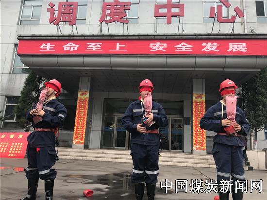 自救器是煤矿井下遇到突发有害气体时,每位员工实施自救、互救的救援器材,如何在最短的时间内、正确佩戴自救器是危急时刻挽救生命的关键所在。经过前期的全员演练,新大地公司职教部门和安监部门,选拔出来自基层队组的6名职工代表为在场人员进行了自救器盲戴演练。