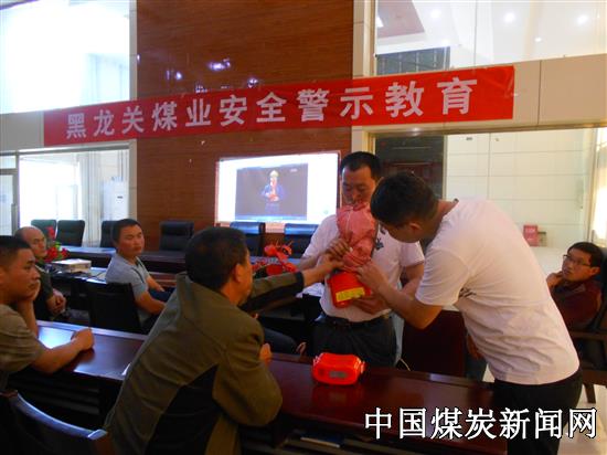 6月13日,黑龙关项目部采取找错纠错的方式,开展了自救器技能培训活动,这也是该项目部六月安全生产月活动培训的缩影。由一名职工演示自救器的错误佩戴方法,再让其他员工讨论说出自救器的佩戴错在哪儿,并说出正确使用步骤、方法、构造、原理及在使用过程中应注意的事项,然后通过视频讲座来对比纠错是否正确,最后轮流对比视频讲座进行模拟实操演练。
