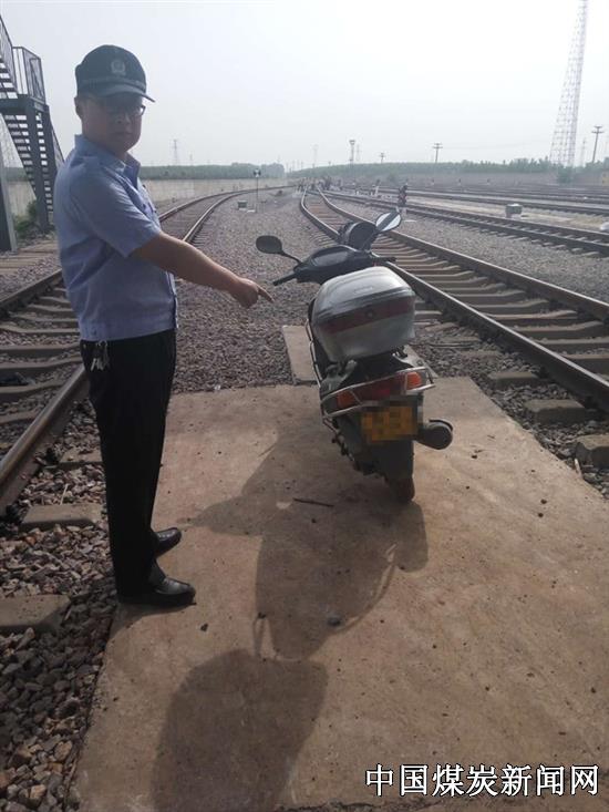 2018年5月29日上午8点25分,兖矿集团铁运处工务段职工严军、武保中心大东派出所民警邓军、李建辉在对矿区铁路大东站场线路进行联合巡线时,发现13股道东侧停放着一辆两轮摩托车,车主为附近村民,正在几十米外的线路旁休息。