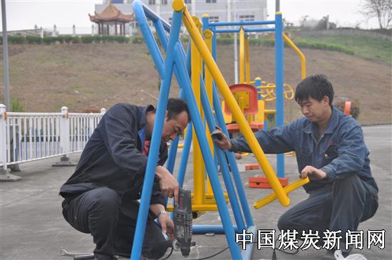 贵州公司新田煤矿机修厂厂长张鹤松边安装娱乐健身器材边不停地说道。
