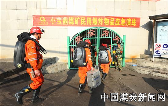 【本网讯】近日,川煤集团攀煤公司小宝鼎矿联合攀枝花市公安局西区分局小宝鼎派出所和攀煤公司救消大队二中队小宝鼎分队在+1300m井口,开展了民用爆炸物品应急救援演练。