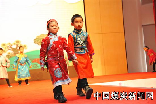 因为蒙古族长期生活在塞北草原,无论男女老少都爱穿着长袍,男装多为蓝色和棕色,女装喜欢用红粉色、蓝绿色等加以修饰。宫廷服饰大气典雅、雍容华贵,传统服饰色彩艳丽、美轮美奂。作为中华传统服饰中的重要组成部分,无论是宫廷服饰还是传统服饰,都以其个性化的艺术魅力,向人们展示出蒙古文化的博大精深,具有浓厚的草原风格。表演还有现代服装秀。蒙古民族服饰,随着蒙古民族的发展,历经沧桑,最后以现代民间服饰崭新的面貌,雨后春笋般地出现在草原上,为广大蒙古民族人民的精神面貌增添了新时代所赋予的风采。目前,越来越多的蒙古民族服饰已经逐渐由传统走向现代,蒙古族文化也在一步步走出草原、走出中国,走上了世界的舞台,现代服装展示的不仅仅是蒙古民族特有的文化,展示更多的是少数民族文化融入祖国大家庭和世界格局的发展态势。儿童服装秀把演出推向了高潮,小演员最小的只有4周岁,最大的8周岁。他们的表演认真、稚拙、精彩、活泼,有板有眼,现场笑声不断,掌声不断。儿童服饰时装秀表演,让我们在小朋友精彩的表演中一起了解了蒙古族儿童服饰文化的可爱与魅力。这一群“萌萌哒”小演员,给妈妈和其他阿姨送上了 “三八节”的节日祝福和特殊的礼物。