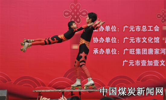 14:00时整,一名演员和6名员工演出激情大方的互动节目《坐板凳》,在欢快轻松的气氛中拉开了帷幕;开场舞《春天的芭蕾》,优美的乐舞,给广大观众营造了喜迎新春佳节的氛围; 4名阳光帅气男生的一首歌曲《兄弟加油》,旋律豪迈、气势磅礴,不愧为荣获四川省首届农民工原创文艺二等奖作品;2名小男孩表演的杂技《炫》,带来了高难度的旋转表演,让观众赞叹不已;老妈妈艺术团曾参加过2012年央电砚台春节联欢晚会,演出的舞蹈《幸福像花儿一样》获得2015年文化部群文最高奖群星奖,此次再献给了矿区观众;原广旺矿区的矿工演员,表演的单口相声,通过广元方言演绎精准扶贫的声音,语言幽默诙谐,点燃了现场的气氛;曾荣获澳洲国际芭蕾舞比赛银奖的表演者,演出的芭蕾舞经典剧目《吉赛尔》,使观众们享受了古典芭蕾舞文化大餐;小品《幸福村的浪漫故事》,演绎了新时代新农村新面貌的故事,令全场观众捧腹大笑;表演唱《一个美丽康养的地方》、四川盘子《习主席的那句话》、歌舞《不忘初心》纵情歌唱,尽情舞蹈,歌声情真意切,舞蹈激情澎湃;演出中途,广旺歌手赵霞表演的《欢天喜地》,唱出了广旺矿区员工历经煤炭市场“寒冬”后、迎来新时代、展现新作为、创造新业绩的信心和决心;舞蹈《携手同行》以磅礴的气势和高昂的旋律将整台晚会推向高潮,为整场演出画上圆满句号。