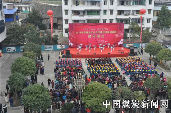 彩球飘飘,人潮涌动,恢宏的气势,缤纷的舞台,2018年1月30日,在2018年新春佳节到来之际,川煤集团广旺公司唐家河矿广场热闹非凡,四川广元市总工会赴广旺矿区开展“贯彻十九大、建功新时代、2018年新春送文化送法律送温暖到基层慰问演出”活动。