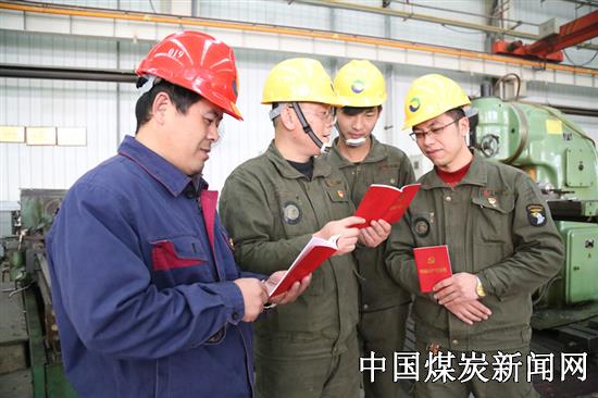 图为在该公司煤机制造部铆焊车间的主题党课上,“质量”成为了学习重点