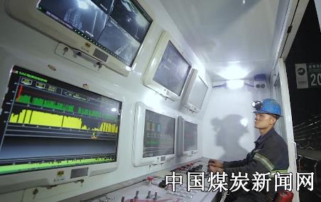 随着操作人员摁下总控台启动按钮,50米开外的工作面缓缓启动的机器轰鸣声打破了地层深处的沉寂,远端的采煤机稳步前行,自如流畅地割煤、推溜、移架,传输皮带上,滚滚的“乌金”流水般地奔向地面。