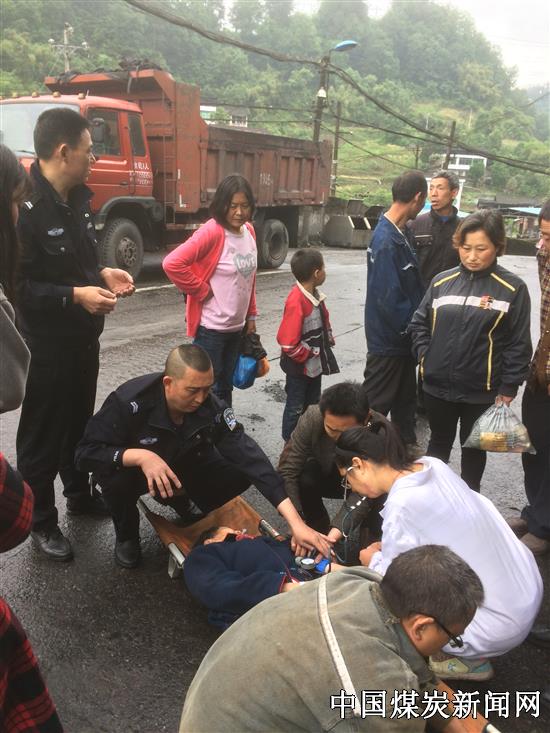 原来,5月7日这一天,在诊所输完液的王老太婆回家途中突感不适,晕倒在该矿地板房的主道上,口吐白沫,鼻腔流血,人事不省,当时正值上班高峰,来往车辆众多,情况万分危急,在监控中发现这一情况的金刚煤矿保卫科周日值班人员张波、苟成学、李华均三人火速赶往现场。