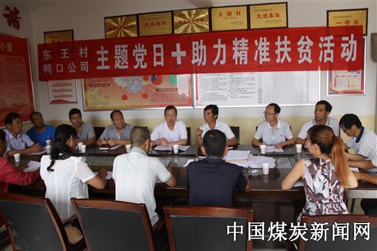 在东王村党支部活动室,该公司成员与村党员干部一起参加精准扶贫工作座谈会,村主任王小成对村目前贫困户基本情况和精准扶贫工作开展情况进行了详细说明,村支部书记王九福给在座的党员上了一节别开生面的精准扶贫专题党课。