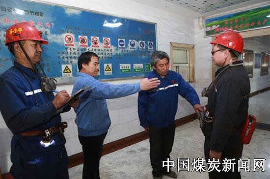 该矿安监员对井口验身工进行岗位标准化操作考核