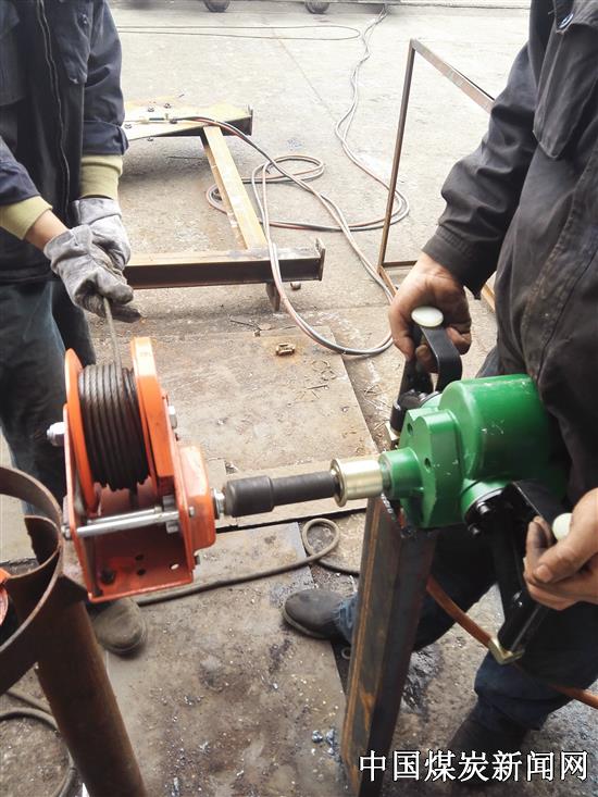“使用该气动式盘绳器后大大减轻了工人的劳动强度,同时提高了盘绳效率,原来通过手动式盘绳器盘一绞盘绳需要约20分钟,现在使用气动式盘绳器盘一绞盘绳只需要2分钟,原来需要至少2人轮流手动盘绳,现在只需1人操作帮锚钻机即可,盘绳效率提高相当显著,工时减少了10倍。”该队队长卢建军说。