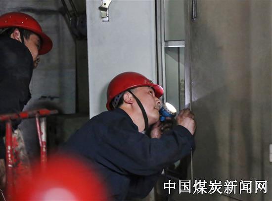 14时30分,孙海波、王勇负责安装保护器。施工过程中,孙海波一直举着矿灯为站在登高凳上的王勇照明,打开的柜门不听使唤的左右小幅度摇摆,孙海波又帮忙扶着柜门,这一配合就是10分钟,直到王勇更换完保护器。