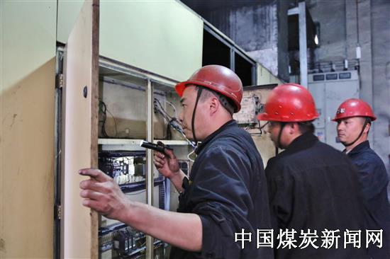 5月24日14时,在沈煤集团红阳三矿选煤厂压风机房1#压风机平台旁,借着室内微弱的照明灯光和矿灯灯光,机电车间电工班班长刘波、领工孙海波、大工王勇,正为刚挪移至此的3#压风机进行线缆对接工作。