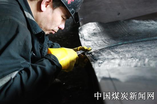 接着粘芯胶条、裁割胶条、铺青稞纸……马贵宾和张利将两个胶补好的皮带端头上下对放,平铺在硫化器下热板上,接缝对正,上靠铁、紧固丝杠、盖上热板、上铝压梁……硫化一个小时,自然冷却三个小时后,最难裁剥、最难打磨的第7个皮带接头硫化完成,没有起泡、翘皮、撕裂等现象,达到了安全使用标准。