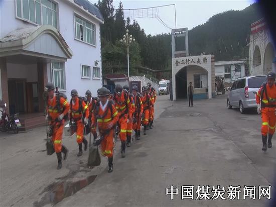 下午14:00整,矿调度室响起一阵急促的电话铃声:采煤二区1295回风巷发生透水事故,当班出勤6人,安监员1人,瓦检员1人,共计8人被困,现场情况不明,等待救援。矿调度接到汇报后立即向上级汇报,矿确认事故、启动应急救援预案,立即向救护中队下达应急救援指令,供应科、社工科迅速备齐救援物资奔赴事故现场,14:25分救护队抵达并深入现场,在1295回风巷上出口发现8名被困人员,并及时组织完成救援。16:20分,救援人员成功升井,1295回风巷风筒恢复通风,各种气体正常。