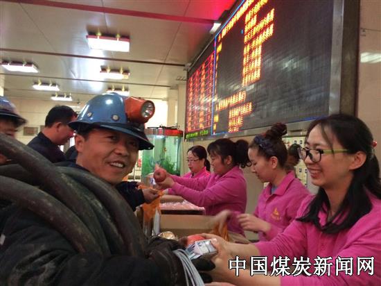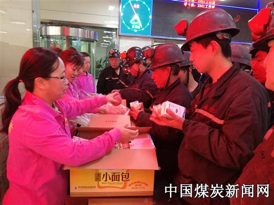 “师傅,带几个面包再下井吧!”“师傅,再拿个苹果啊。”女工协管安全员们边说边把手中的苹果和牛奶递给矿工兄弟们,再三叮嘱他们时刻把安全挂在心上。