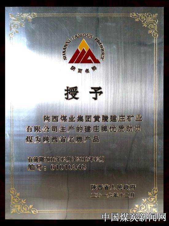 近日,在经过北京新世纪认证公司、延安市质监局、陕西省名牌战略推进委员会的层层把关和现场审核之后,蒲白建庄矿业“建庄牌”优质动力煤顺利通过了省名牌产品认证,被陕西省政府授予“陕西省名牌产品”殊荣。