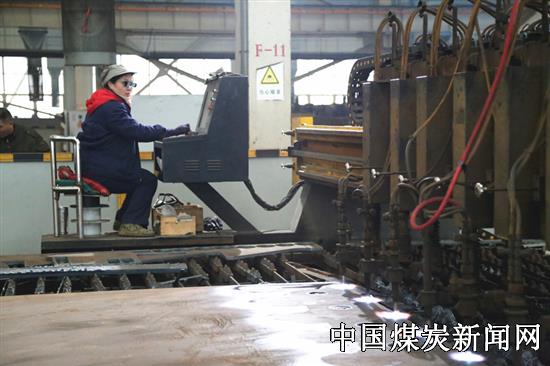 图为车间职工正在进行ZY12000支架配件的下料工作