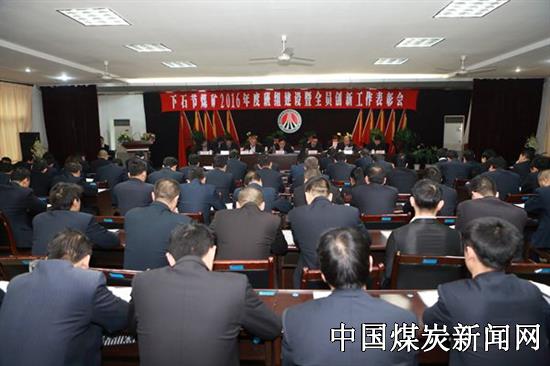 2017年1月9日,陕煤铜川矿业公司下石节矿在机关四楼会议室召开2016年班组建设暨全员创新工作表彰会,评树典型,表彰先进,创新思路,对持续深入开展班组安全建设、全员创新工作进行全面安排布署。该矿党政领导和全矿各条战线上的管理干部、明星班组、优秀班组、优秀班组长、全员创新获奖代表参加了会议。