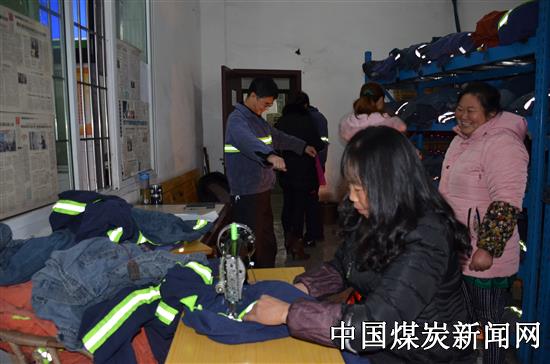 近日,在川煤芙蓉威鑫煤业公司洗衣房处时不时传来呲呲的声音。走近一看,原来是几名女工家属正在为职工缝补、制作反光标志工作服,一位女工家属将自己家的缝纫机奉献出来,在洗衣房为职工工作服增加反光条。