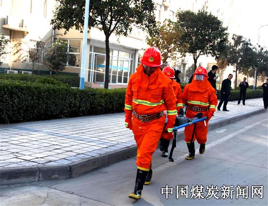 这是河南能源化工集团焦煤公司赵固矿区治安保卫部一大队组织开展的消防实战演练活动。演练中,假定河南能源化工集团焦煤公司赵固一矿1号宿舍楼发生火灾,监控室值班人员通过监控视频发现火情,宿舍管理员发现有人员被困,安全受到威胁,迅速通知保卫值班人员,值班员第一时间拨打电话通知调度室,同时组织人员现场疏散。消防人员按照应急预案有序进行火灾扑救。