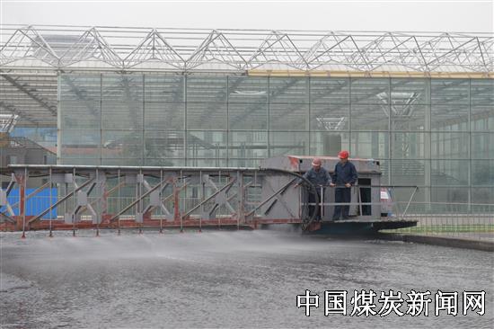 针对这一困扰了他们许久的问题,该车间自动自发,出主意,想办法,终于研制出了浓缩池喷淋消泡装置,该装置从研制、安装到调试试用仅用了七天的时间!该设备使用直径50公分钢管加分支6分钢管安设高压喷淋头,利用修旧利废修复的高压潜污泵进行加压,固定在耙架上,自动运行喷淋消泡。此装置投入使用后,可使洗煤介耗每吨降低0.2kg,每月介耗费用可节约8.12万元。该装置自投入试用以来有效地改善了溢流堰堵篦网的现象,降低了沉淀药剂的消耗,确保了重介洗煤煤质质量。