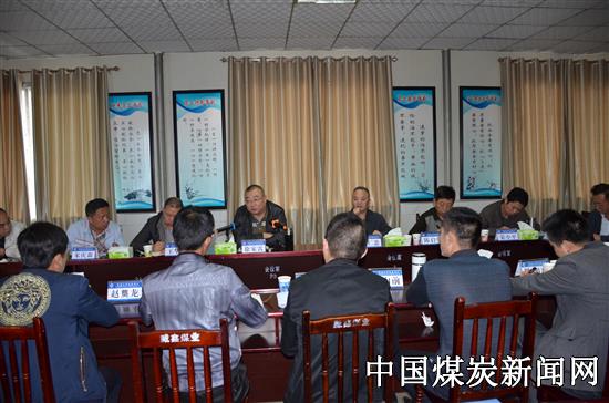 在威鑫煤业公司办公楼一楼会议室,雷仁忠主持召开洁净型煤生产车间验收预备会,布置验收工作,验收组分为7个专业组进行现场验收,查阅资料等。