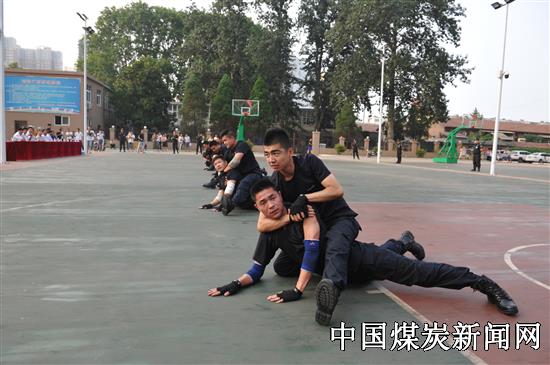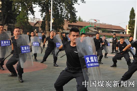 在义络煤业职工活动广场,特勤队的队员们正在热火朝天的开展着训练:三大步伐、盾牌操、警卫拳、倒功、擒敌拳,一个个训练项目看得人心生敬畏。