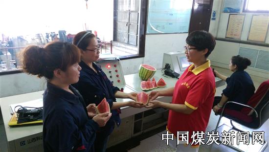 为了不耽误工人们开会,下午2点30分,女工们就提前在会议室里开始忙活了,她们将西瓜一个个擦干净、切好、摆放整齐,等着上四点班的工人们到来。工人们吃着香甜的西瓜,笑了。