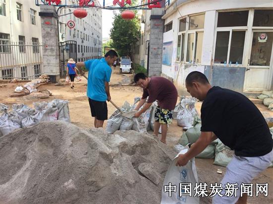 到达受灾地,他们兵分两路,一路人员在梅苑小区门口用沙子水泥装入袋子砌成防洪墙,另一路人员帮忙清理小区内淤泥。
