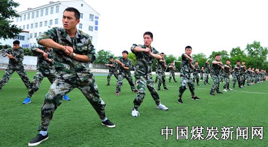 下午4:30,教官排兵布阵,学生们在行进中变换着不同的队形,队伍显得更加严整。