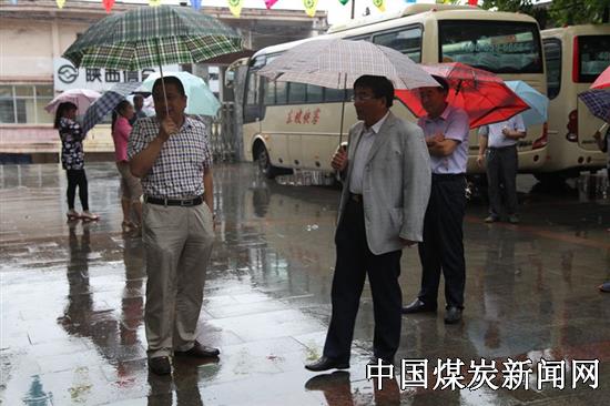 金华山矿在崔家沟分公司工作的干部职工表示,适应新岗位,加强新技术的学习和应用,抓好质量标准化工作,促进工作,增进交流,共同打造铜煤品牌。图为该矿领导冒雨为将士们送行