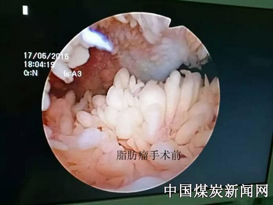 关节滑膜树枝状脂肪瘤病变主要累及单膝或双膝关节,也有累及到髋、肩、腕、肘 关节的情况,骨六科大夫郭家全在关节镜清楚的视野下看到患者膝关节内满是淡黄色树枝状、乳头状、结节状增生瘤体,经过关节镜下对关节腔和和后方关节囊的一个多小时的微创手术,增生的脂肪瘤等被清理干净,为患者解除了病痛,患者对手术非常满意。