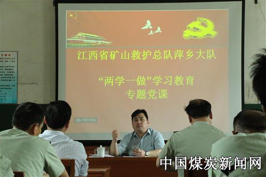 江西省矿山救护总队萍乡大队在“两学一做”学习教育中,根据自身服务职业,增加学习内容,提倡党员干部加强“四学二做”学习教育,学习党章党规,学系列讲话,学做人、学做事,做合格党员,做好感恩人。