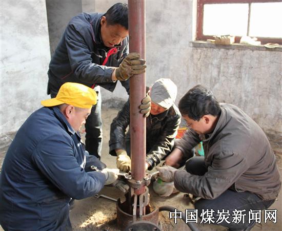 2月23日中午10时许,伴随调车起调泵管的轰呜声,只见深井泵钢管徐徐上升,这是陕煤韩城矿务局实业下峪口分公司干群抢修深井泵站保小区职工家供水的一幕。